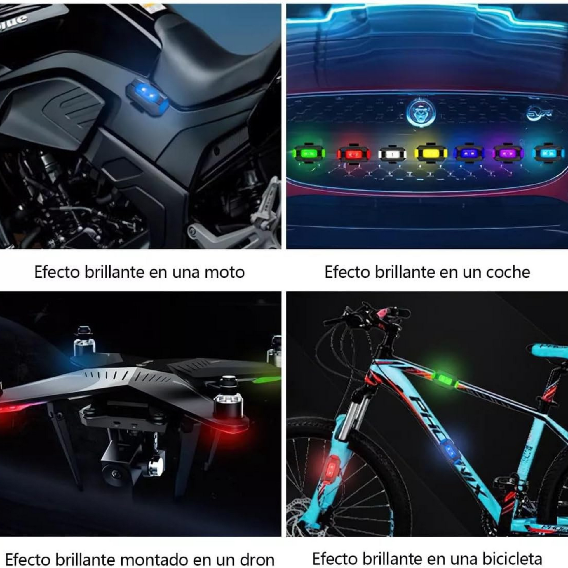 Fáciles de instalar y compatibles con cualquier modelo de moto o carro 🏍️🚙, puedes elegir entre siete modos 🕹️, desde un flash rápido hasta una luz constante que deja sin palabras.